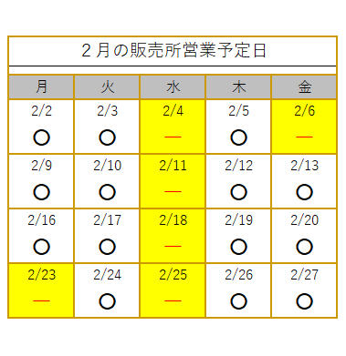 12月は… 大根 1月は… 小松菜 ○ その他のおすすめ商品 ○ 野菜 … 大根、白菜 野菜苗 … ありません 草花 … パンジー、ビオラ ○ 加工品 ○ いちごジャム、ブルーベリージャム … 販売中 600円 マーマレード … 品切れ中 味噌 … 販売中 400円 【その他】 ※ 実習状況及び収穫状況等により、日によって販売されている商品が異なります。 また営業日となっている日も、急遽お休みさせていただく場合がございます。 当日の状況については販売所までお問い合わせください。 ※ 新型コロナウイルス感染防止のために、マスクの着用、手指の消毒等にご協力ください。 ※ レジ袋の削減にご協力お願いします。マイバック・マイカゴ等を持参していただけると嬉しいです。 【販売所】 実習農場(旧上野農業高校) ・・・・・本校舎ではありませんのでご注意ください。 住所: 伊賀市荒木1856-55 TEL: 0595-24-0123 ,8248fd8d-5a3f-4263-92de-215444189e39,, |